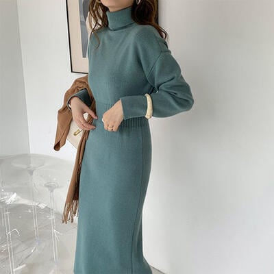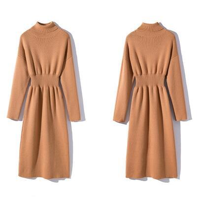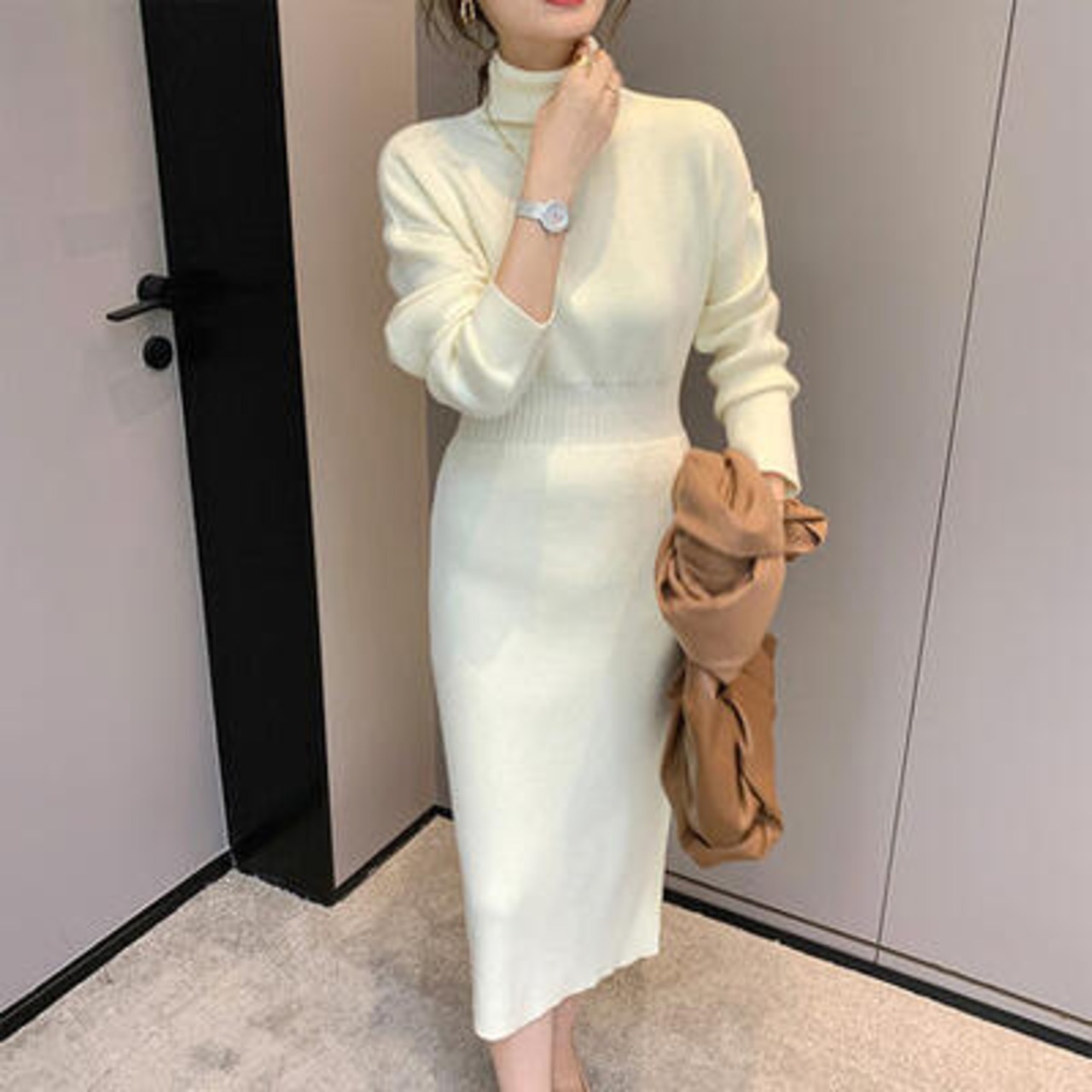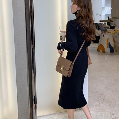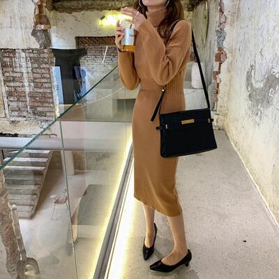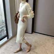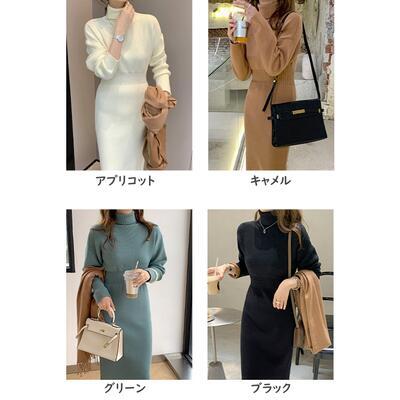 全4色 ニット ワンピース ロングワンピ タートルネック エレガント カジュアル ミモレ丈 長袖 ワンピ レディース ドレス タイト スリム 大人可愛い ハイウエスト おしゃれ フェミニン グリーン 緑 ベージュ ホワイト 白 ブラック 黒 春 秋 冬 20代 30代 40代 50代