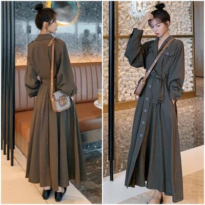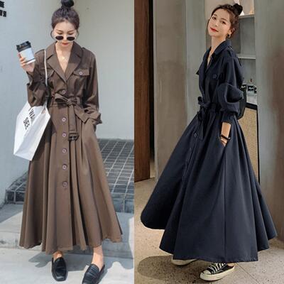 全2色 大きいサイズ ワンピース ロングワンピ トレンチコート アウター コート エレガント カジュアル ロング丈 長袖 ワンピ レディース ドレス 大人可愛い ゆったり ウエストベルト おしゃれ シンプル フェミニン ブラック 黒 ブラウン 春 秋 冬 20代 30代 40代 50代