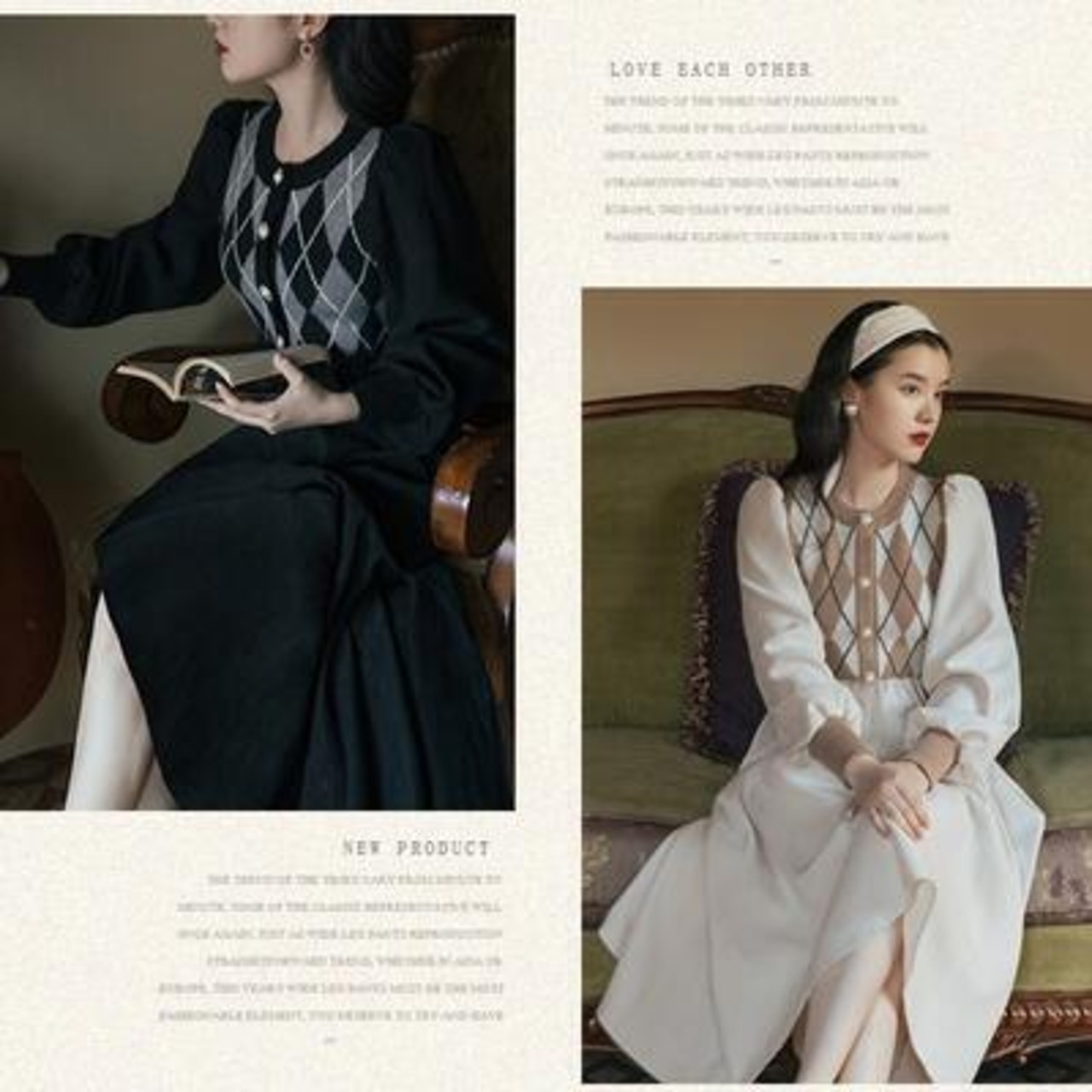 クラシカルな雰囲気のアーガイル柄ニットワンピース。