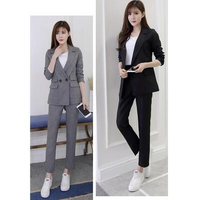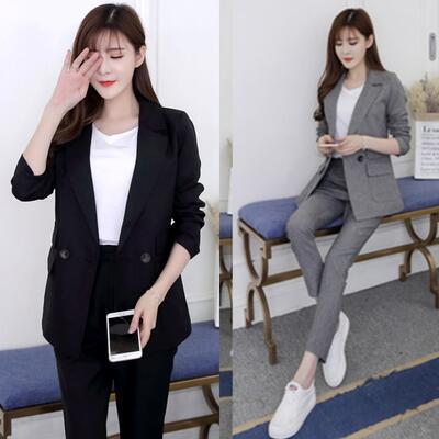 全2色 大きいサイズ セットアップ 3点セット スーツ テーラードジャケット ジャケット パンツ テーパード Tシャツ インナー きれいめ カジュアル 長袖 クロップド丈 レディース かっこいい おしゃれ オフィス フォーマル グレー ブラック 黒 春 秋 冬 20代 30代 40代 50代