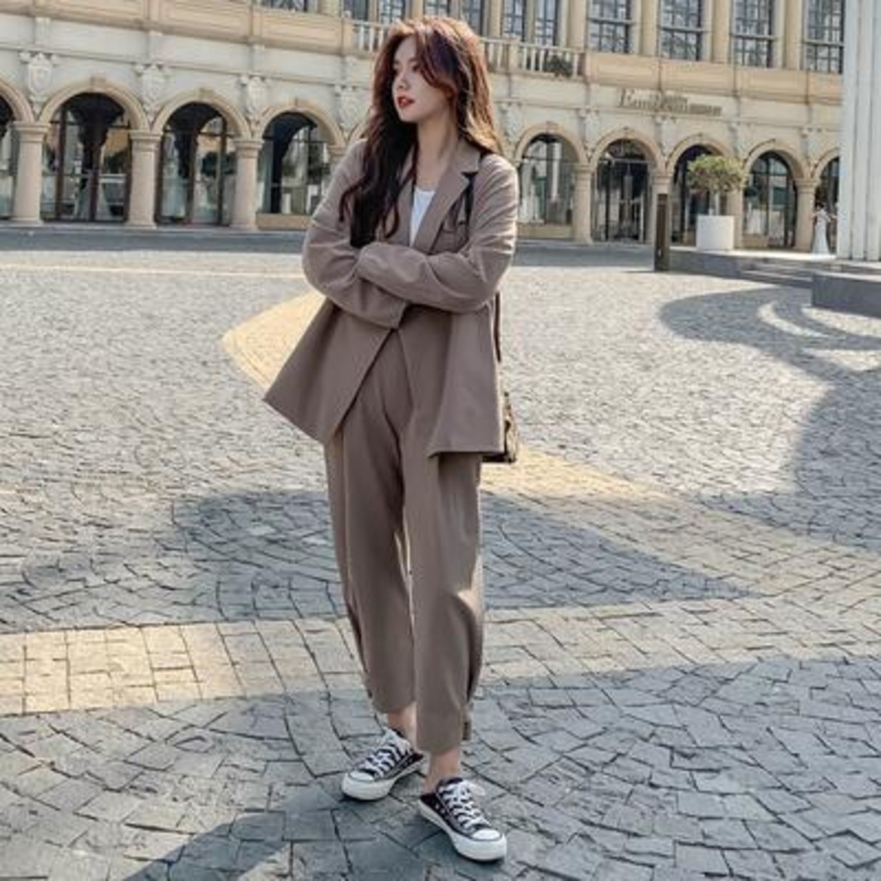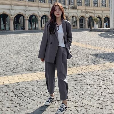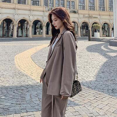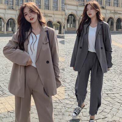 オーバーサイズのテーラードジャケット&パンツのスーツ。