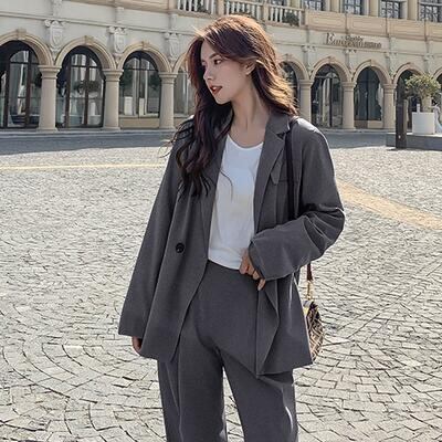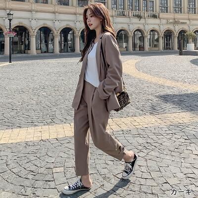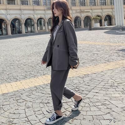 全2色 セットアップ 2点セット スーツ テーラードジャケット ジャケット パンツ テーパード オーバーサイズ きれいめ カジュアル 長袖 クロップド丈 レディース かっこいい おしゃれ マニッシュ ゆったり グレー ベージュ 春 秋 冬 20代 30代 40代 50代