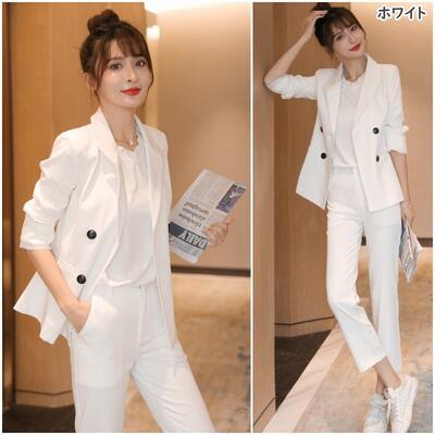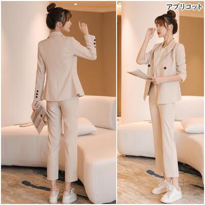 全4色 大きいサイズセットアップ 2点セット スーツ テーラードジャケット ジャケット パンツ テーパード きれいめ カジュアル 長袖 クロップド丈 レディース かっこいい おしゃれ マニッシュ ベージュ ブラック 黒 ピンク ホワイト 白 春 秋 冬 20代 30代 40代 50代