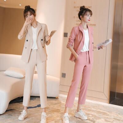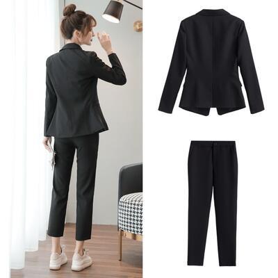 テーラードジャケット&クロップドパンツのスーツ。