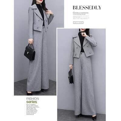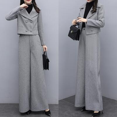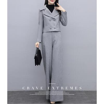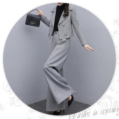 セットアップ 2点セット スーツ テーラードジャケット ジャケット パンツ ワイドパンツ ヘリンボーン きれいめ カジュアル 長袖 ショート丈 ロングパンツ レディース かっこいい おしゃれ 大きいサイズ エレガント グレー 春 秋 冬 20代 30代 40代 50代