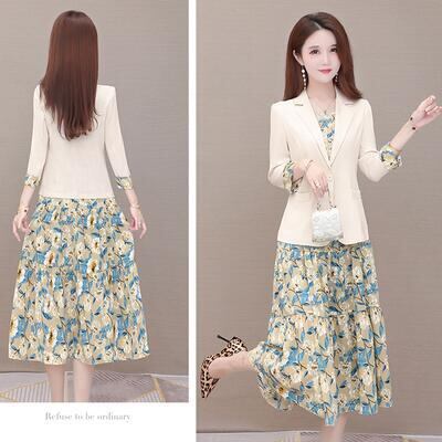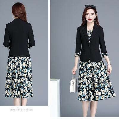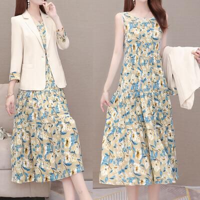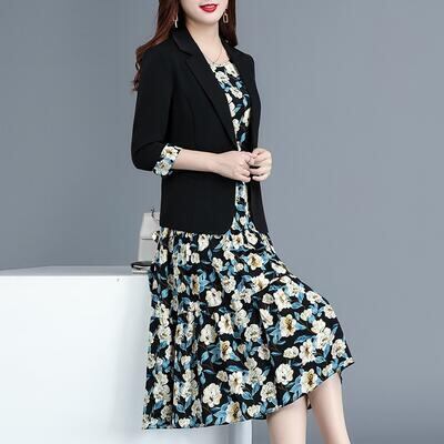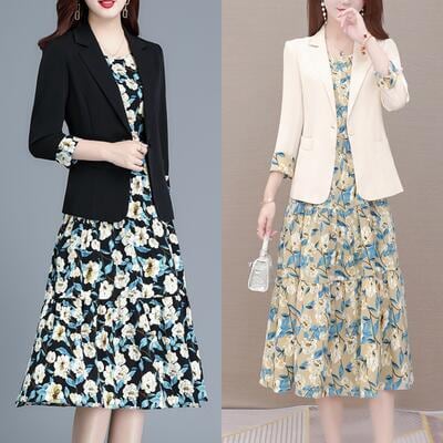 花柄のジャケット&ノースリーブワンピースのセット。