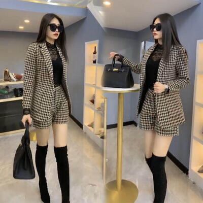 セットアップ 2点セット 千鳥格子柄 テーラードジャケット ジャケット ショートパンツ きれいめ カジュアル 長袖 レディース クラシカル おしゃれ フェミニン 大人可愛い かっこいい 大きいサイズ 春 秋 冬 20代 30代 40代 50代