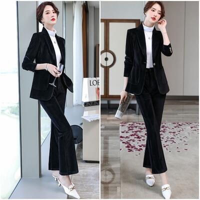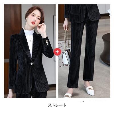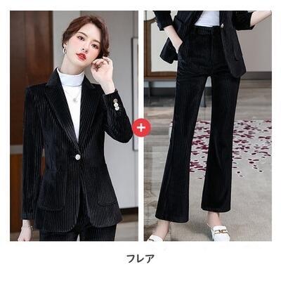 全2種 フォーマルセットアップ 2点セット テーラードジャケット ジャケット パンツ ワイドレッグ フレアパンツ ベルベット きれいめ カジュアル 長袖 レディース おしゃれ フェミニン 大きいサイズ お呼ばれ かっこいい ブラック 黒 春 秋 冬 20代 30代 40代 50代