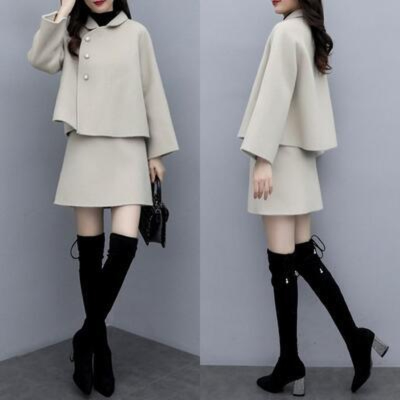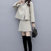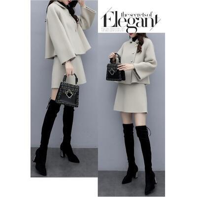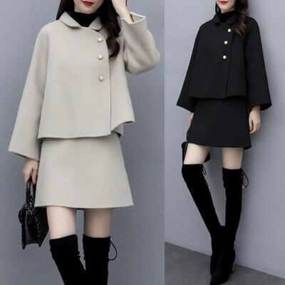 全2色 ウール混 セットアップ 2点セット ジャケット アウター ミニ スカート コート ひざ上丈 スーツ きれいめ カジュアル レディース おしゃれ エレガント 大人可愛い 大きいサイズ ベージュ ホワイト 白 ブラック 黒 春 夏 秋 冬 20代 30代 40代 50代