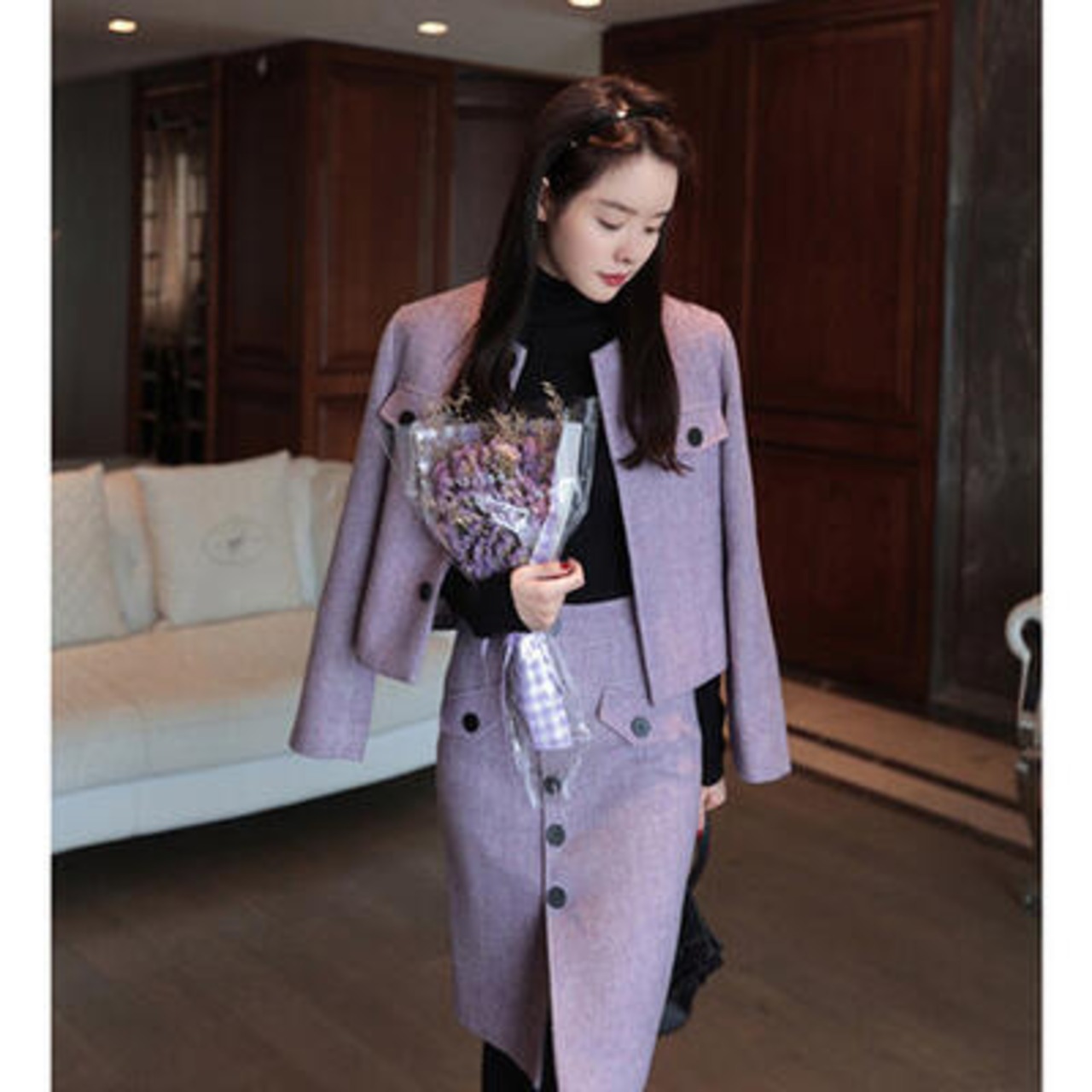 綺麗なカラーのジャケット&スカートのセットアップ。
