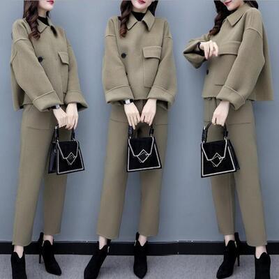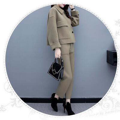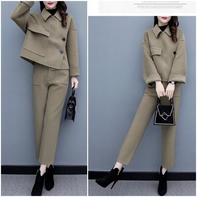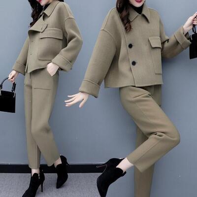 全2色 大きいサイズセットアップ ジャケット アウター パンツ テーラードジャケット アンクルパンツ 長袖 クロップド丈 スーツ きれいめ カジュアル レディース 大人可愛い ゆったり かっこいい ブルー 青 カーキ 春 秋 冬 20代 30代 40代 50代