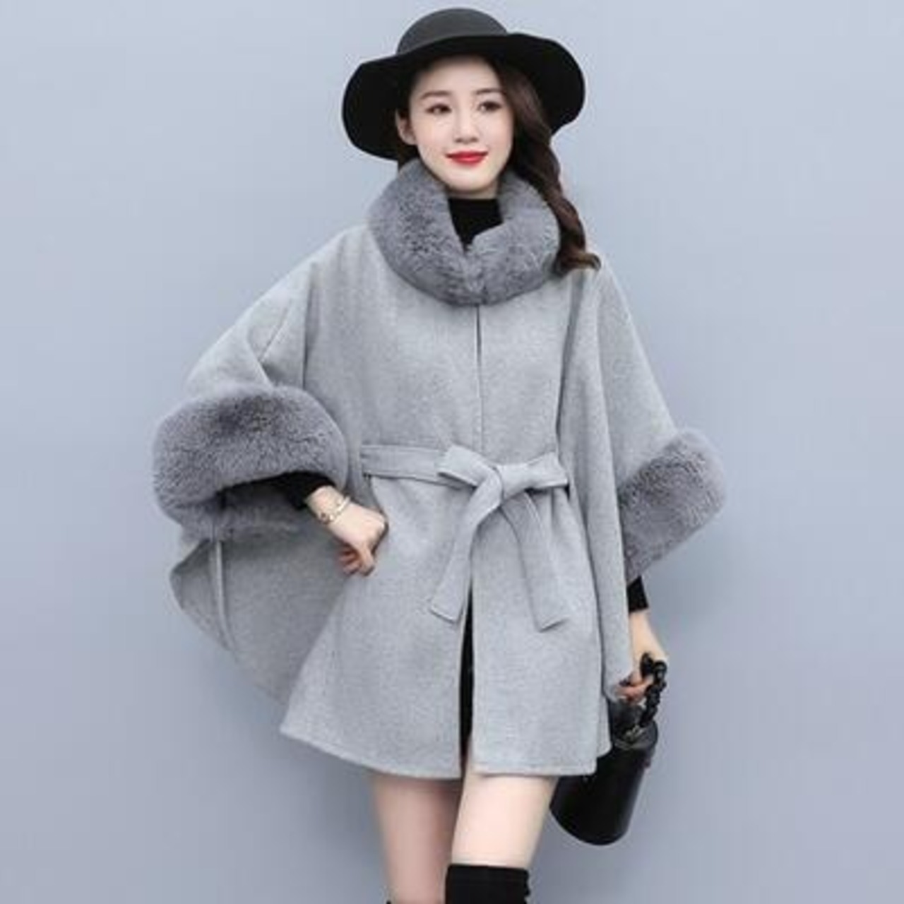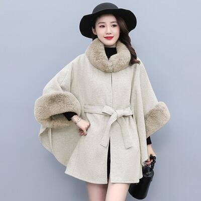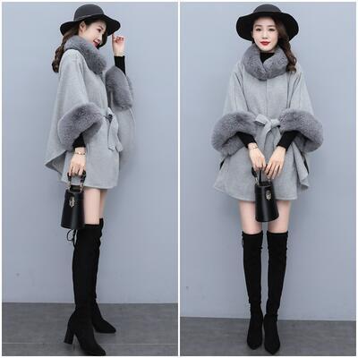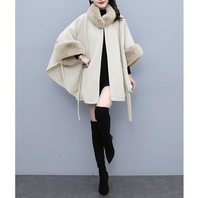 ふわふわファーをポイント使いしたニットのケープコート。