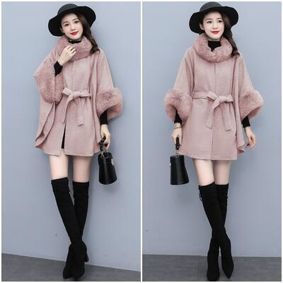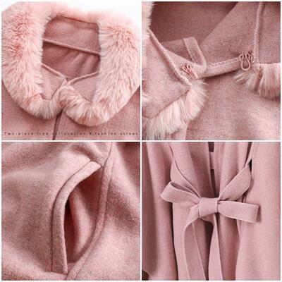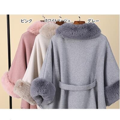全3色 ファー コート ケープ マント ポンチョ レディース きれいめ エレガント カジュアル ジャケット アウター おしゃれ 長袖 大人可愛い シンプル エコファー ゆったり 羽織り ウエストリボン ベージュ ピンク グレー 春 秋 冬 20代 30代 40代 50代