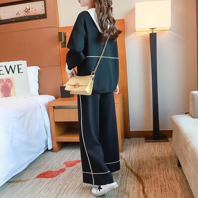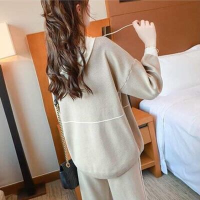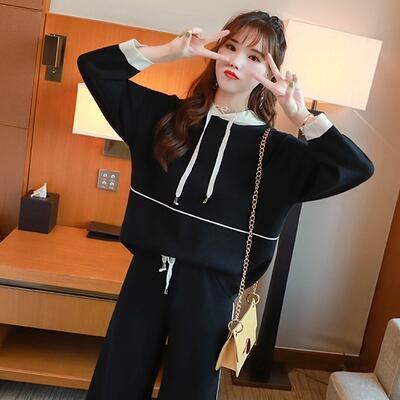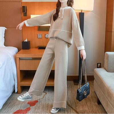 カジュアルなフーディートップスとパンツのセットアップ。