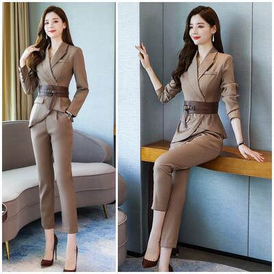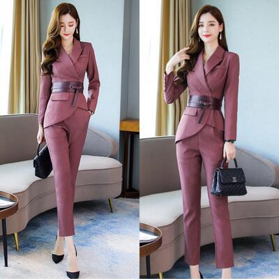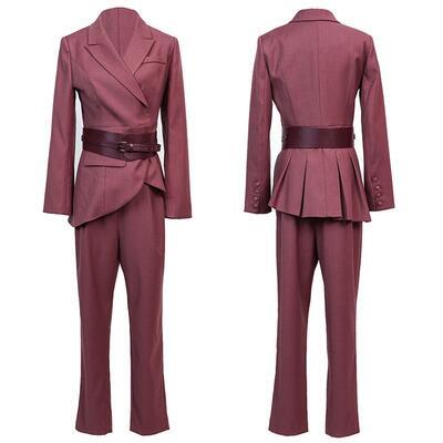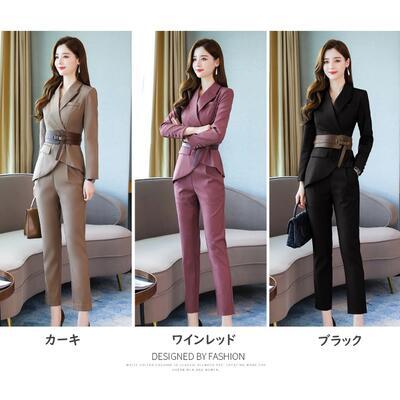 全3色 大きいサイズ かっこいい セットアップ 2点セット テーラードジャケット パンツ スーツ テーパード アンクル丈 アシンメトリー 長袖 おしゃれ きれいめ カジュアル エレガント レディース ウエストベルト お呼ばれ レッド 赤 カーキ ブラック 黒 春 秋 冬 20代 30代 40代 50代