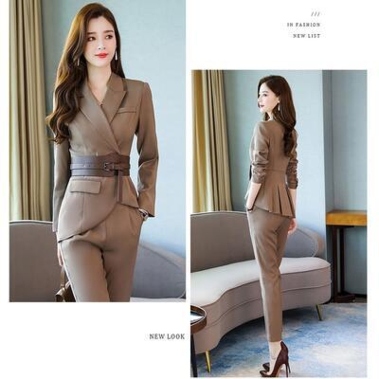 ウエストベルトが全体の印象を引き締め、アクセントに。