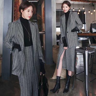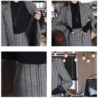 セットアップ 2点セット テーラードジャケット スカート ストライプ スーツ ヘリンボーン ミモレ丈 スリット 長袖 おしゃれ きれいめ カジュアル エレガント トラッド レディース かっこいい 大きいサイズ グレー 春 秋 冬 20代 30代 40代 50代