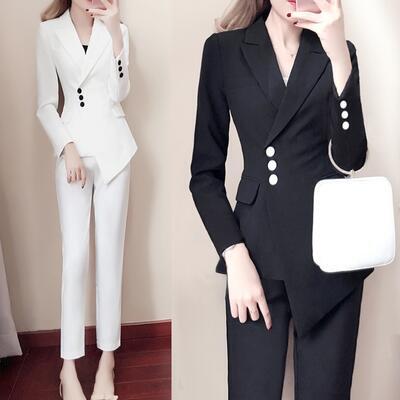 全2色 フォーマル 大きいサイズセットアップ 2点セット テーラードジャケット パンツ アシンメトリー スーツ ジャケット テーパードパンツ アンクル丈 長袖 おしゃれ きれいめ カジュアル エレガント レディース かっこいい ホワイト 白 ブラック 黒 春 秋 冬 20代 30代 40代 50代
