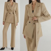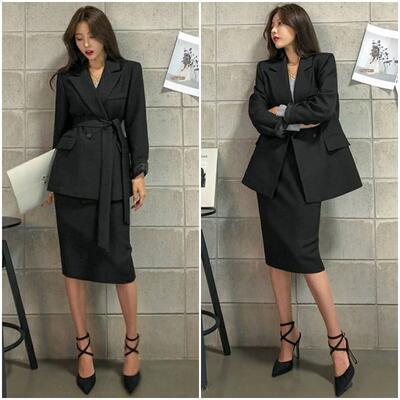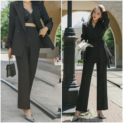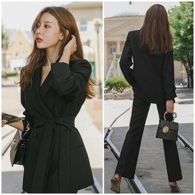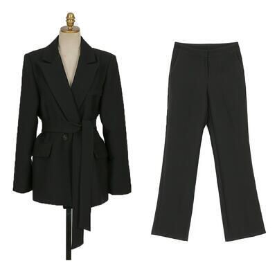 全2種2色 フォーマル 大きいサイズセットアップ 2点セット テーラードジャケット パンツ スカート スーツ ジャケット ワイドレッグ ロング丈 ミモレ丈 長袖 おしゃれ きれいめ カジュアル エレガント レディース かっこいい リボンベルト カーキ ブラック 黒 春 秋 冬 20代 30代 40代 50代