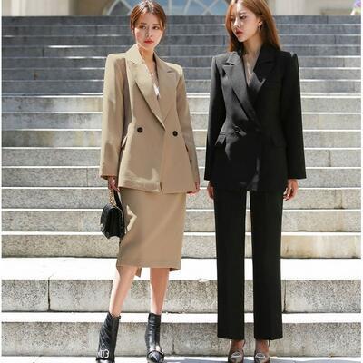 パンツとスカートから選べる、テーラードジャケットのスーツ。