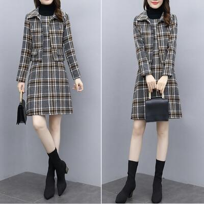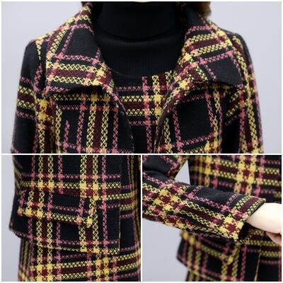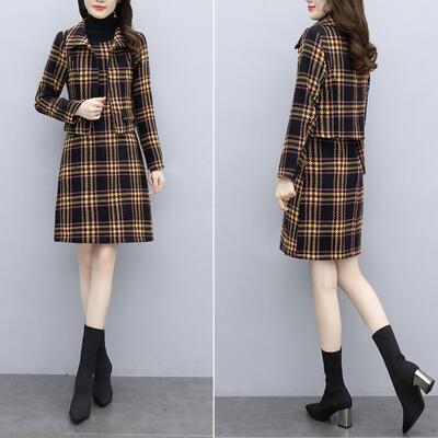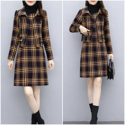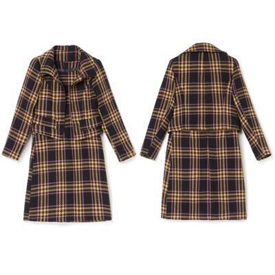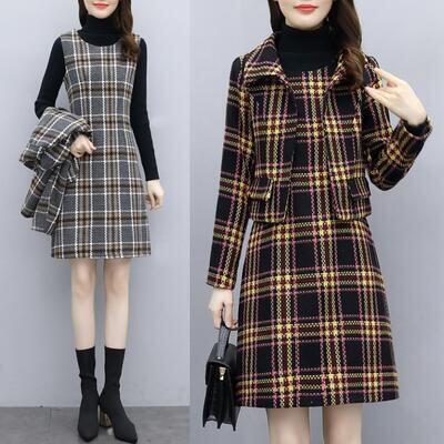 チェック柄ジャケット&ノースリーブワンピースのセット。