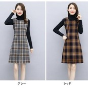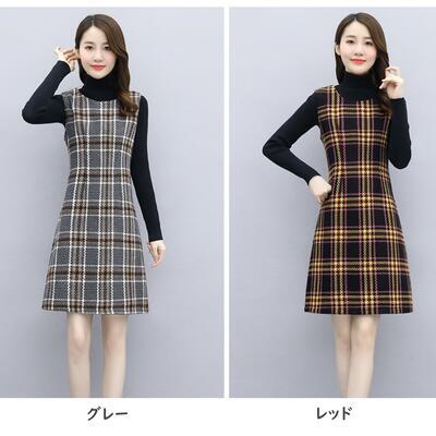 全2色 セットアップ 2点セット ジャケット ワンピース ノースリーブ ひざ上丈 スーツ 長袖 おしゃれ チェック きれいめ 大人可愛い カジュアル フェミニン Aライン スリム オフィス 大きいサイズ レッド 赤 グレー 春 秋 冬 20代 30代 40代 50代