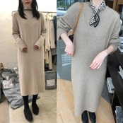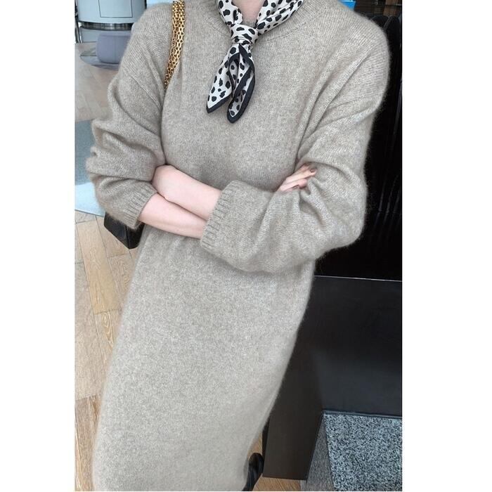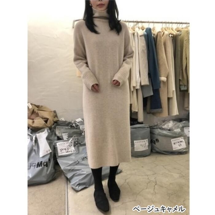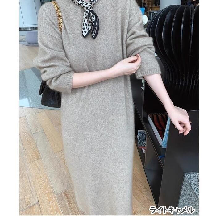 全2種3色 大きいサイズウール混 ニット ワンピース ロングワンピ クルーネック タートルネック ミモレ丈 きれいめ カジュアル レディース ワンピ ドレス Aライン 大人可愛い シンプル ゆったり 体型カバー リラックス ベージュ ブラウン 春 秋 冬 20代 30代 40代 50代