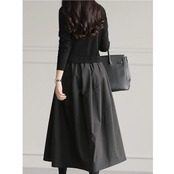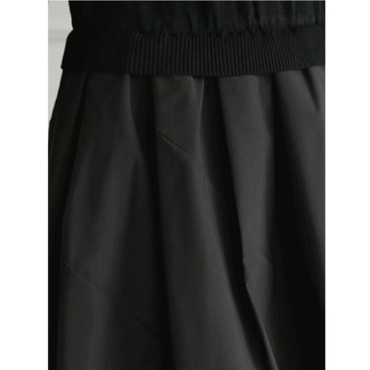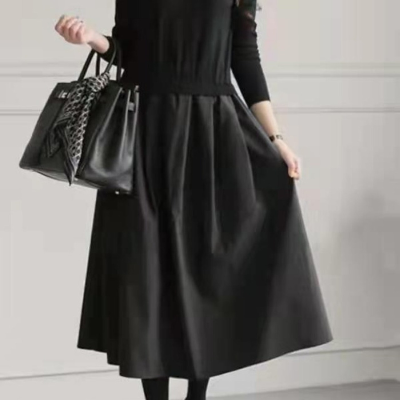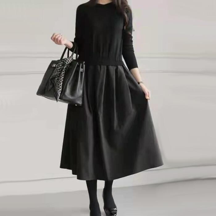 セパレート風 ニット ワンピース ロングワンピ クルーネック 異素材ミックス ドッキング ミモレ丈 きれいめ カジュアル レディース ワンピ ドレス Aライン 大人可愛い シンプル ゆったり 体型カバー リラックス ブラック 黒 春 秋 冬 20代 30代 40代 50代