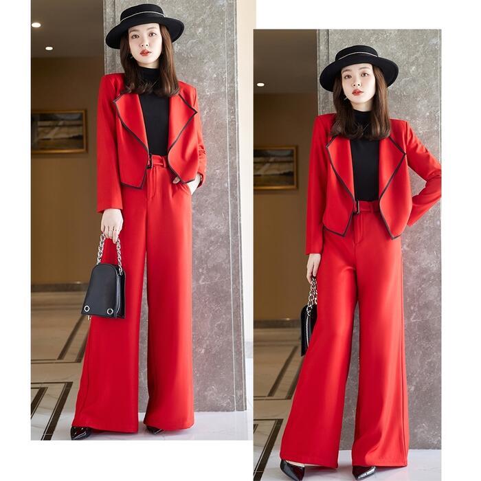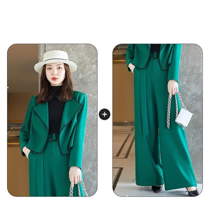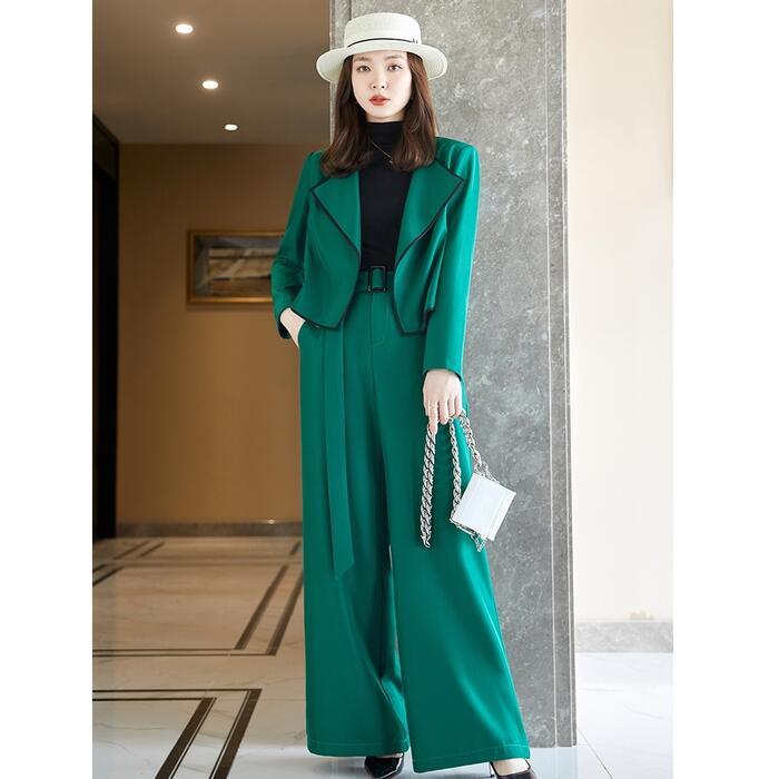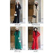 全4色 大きいサイズ かっこいいセットアップ 2点セット ジャケット アウター パンツ ワイドレッグ 長袖 ショート丈 ロングパンツ おしゃれ きれいめ 大人可愛い エレガント カジュアル フェミニン レッド 赤 グリーン 緑 ブラック 黒 ベージュ 春 夏 秋 冬 20代 30代 40代 50代