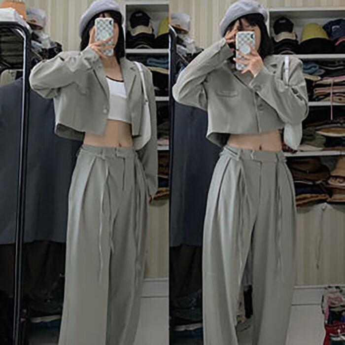 セットアップ テーラードジャケット パンツ スーツ ジャケット ロング丈 袖あり 長袖 体型カバー 太ももカバー おしゃれ お出かけ デート きれいめ カジュアル エレガント レディース カーキ 春 秋 冬 20代 30代 40代 50代