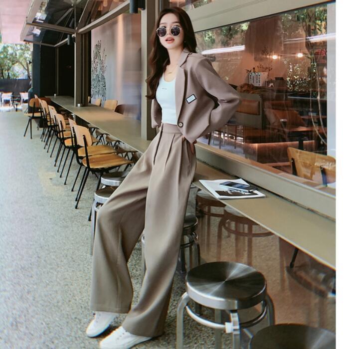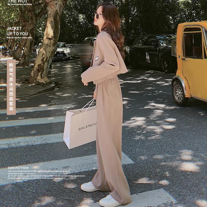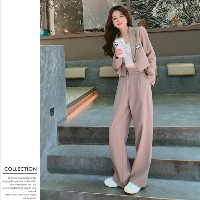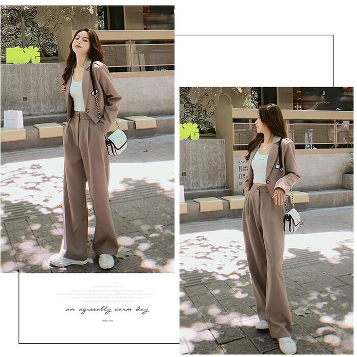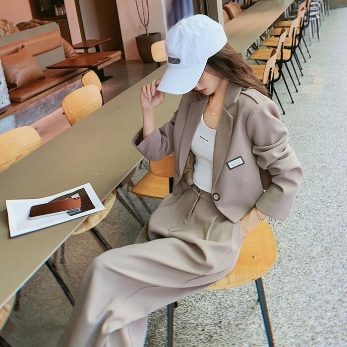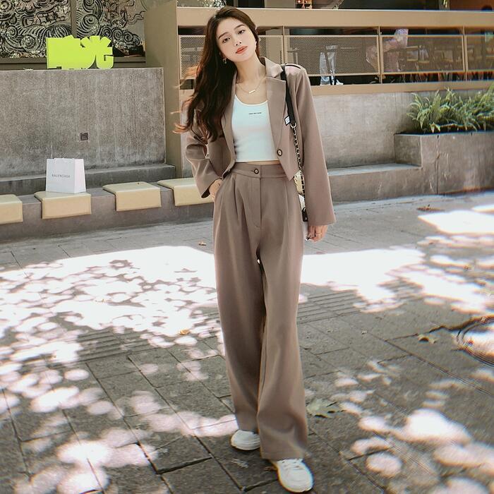 セットアップ 2点セット スーツ ジャケット アウター パンツ ワイドレッグ 長袖 ショート丈 ロングパンツ おしゃれ きれいめ 大人可愛い エレガント カジュアル フェミニン かっこいい カーキ 春 夏 秋 冬 20代 30代 40代 50代