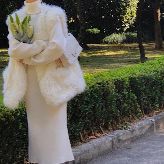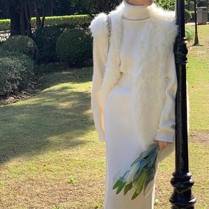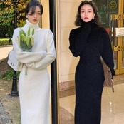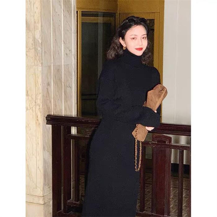 柔らかく着心地良いタートルニットワンピース。