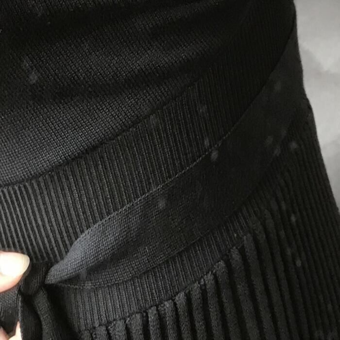 エレガントな雰囲気のロングニットワンピース。