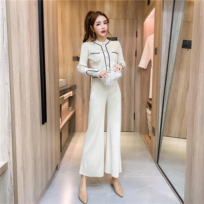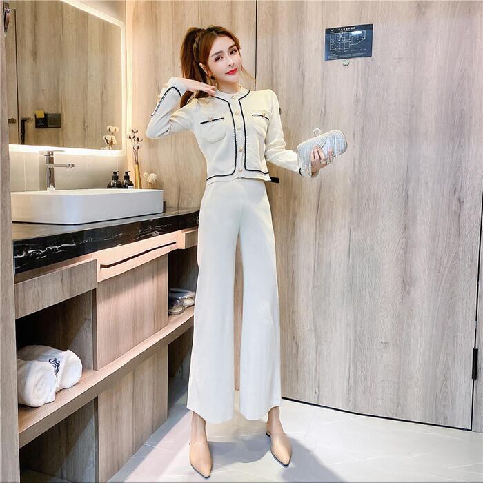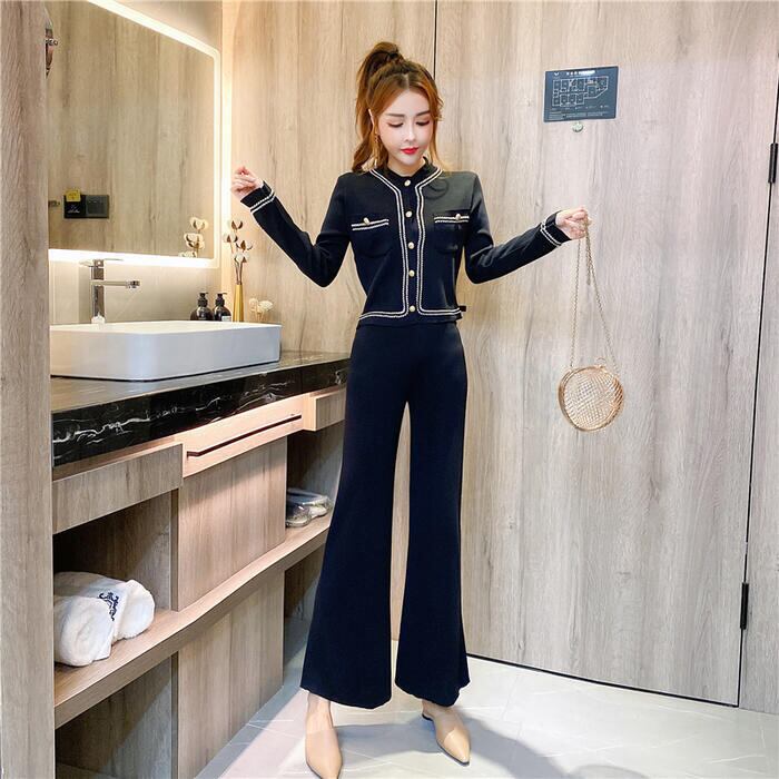 全2色 きれいめ カジュアル 大きいサイズ 2点セット セットアップ トップス パンツ ノーカラージャケット ショート丈 ロングパンツ 長袖 おしゃれ 大人可愛い エレガント フレアパンツ お呼ばれ ベージュ ブラック 黒 春 夏 秋 冬 20代 30代 40代 50代