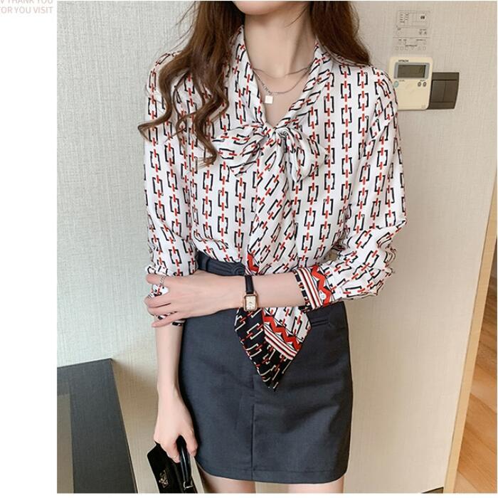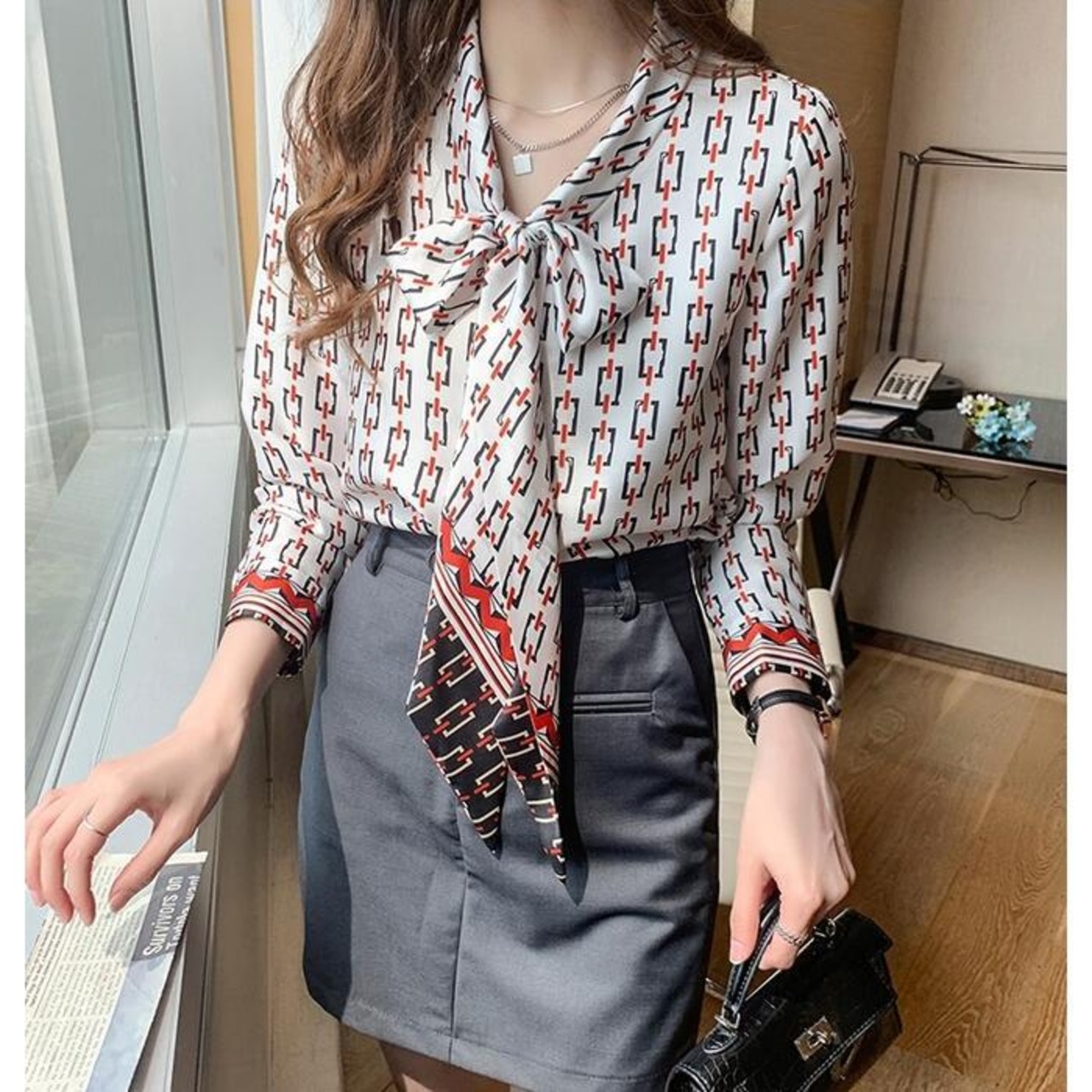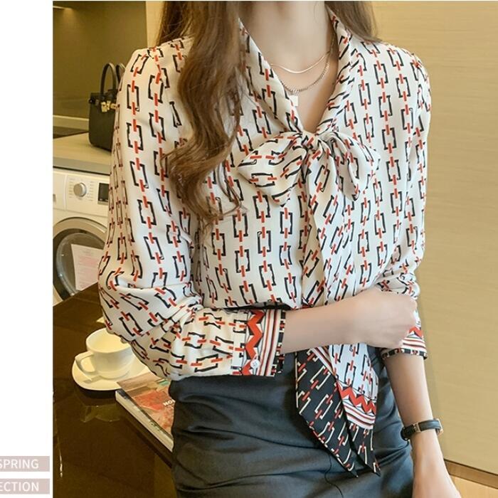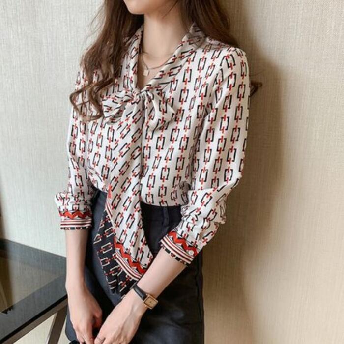 トップス ブラウス シャツ チェーン柄 リボンタイ レディース きれいめ カジュアル おしゃれ 長袖 大人可愛い エレガント フェミニン かっこいい クラシカル レトロ 大きいサイズ 通勤 春 秋 冬 20代 30代 40代 50代