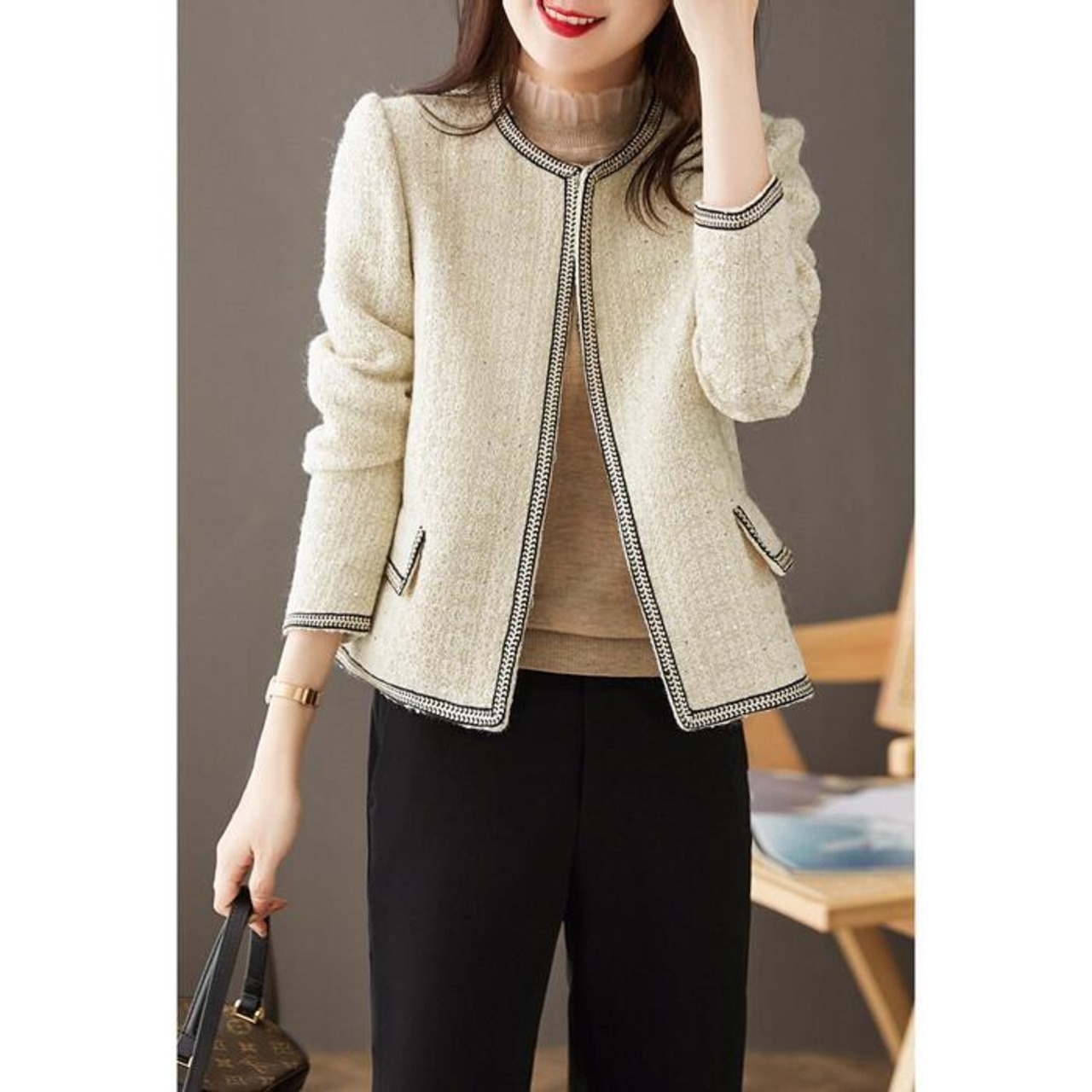 ノーカラージャケット コート アウター ツイード レディース カジュアル おしゃれ 長袖 きれいめ 大人可愛い クラシカル エレガント シンプル ラメ フェミニン 通勤 フォーマル お呼ばれ 大きいサイズ ベージュ 春 秋 冬 20代 30代 40代 50代