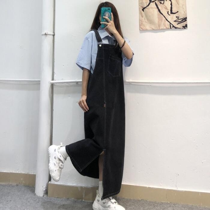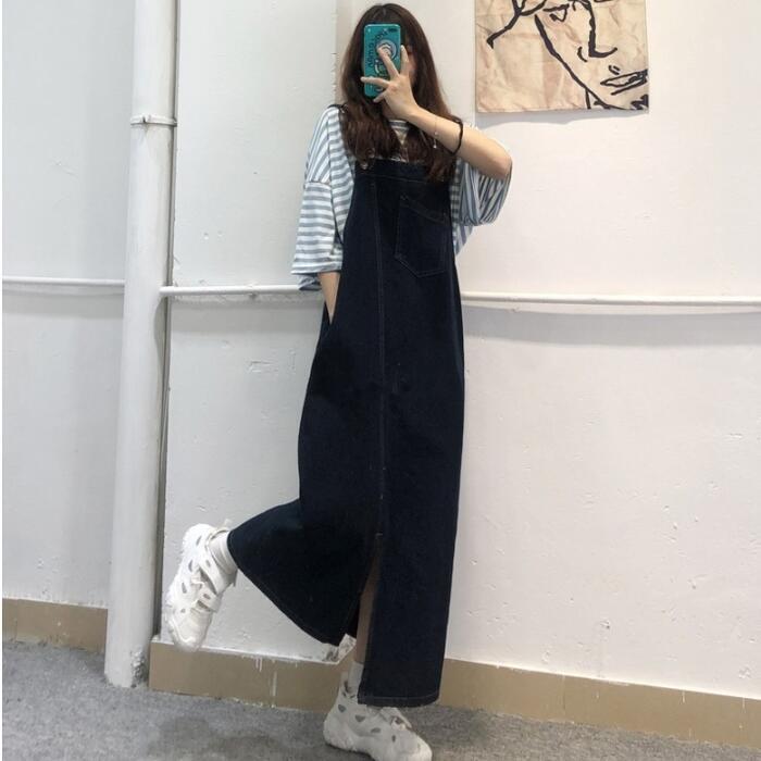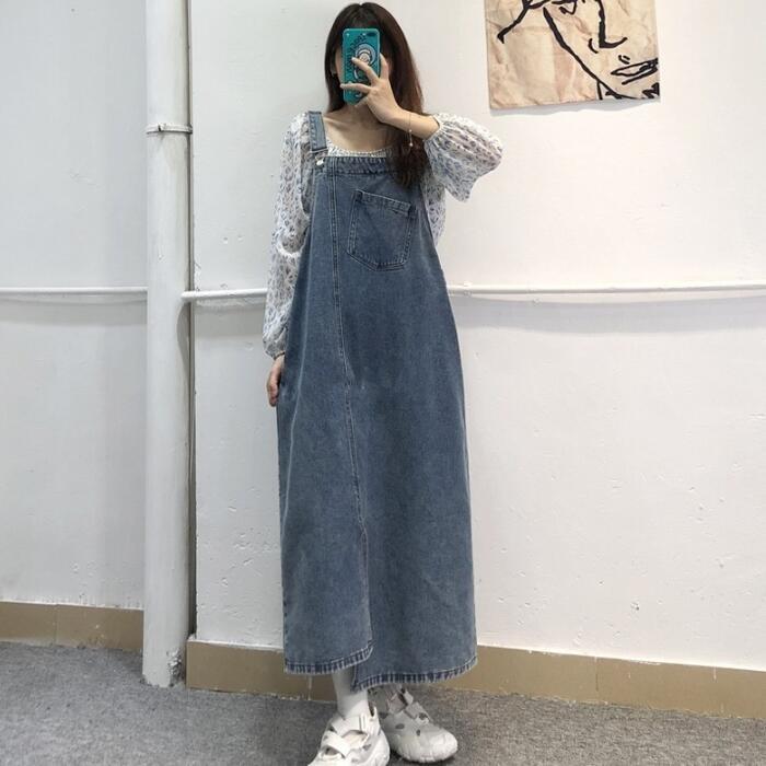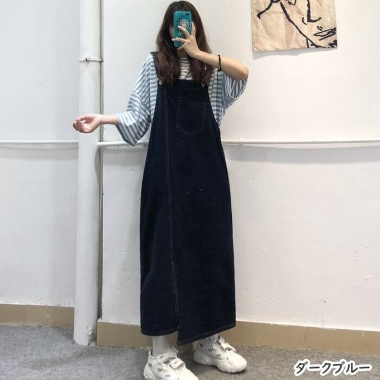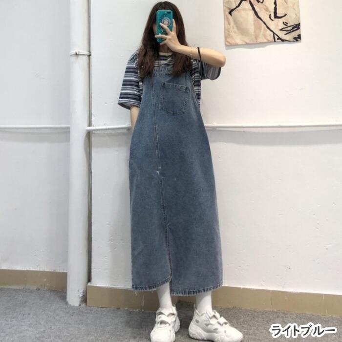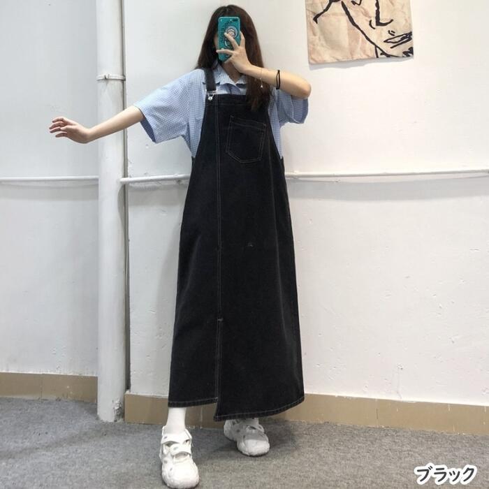 全3色 デニム サロペットスカート ワンピース ロングワンピ ロング丈 ジャンパースカート カジュアル レディース ワンピ ドレス フェミニン 大人可愛い ゆったり シンプル 大きいサイズ オールシーズン ブルー 青 ブラック 黒 春 秋 冬 20代 30代 40代 50代