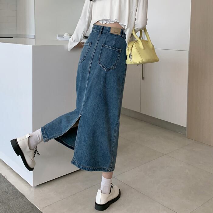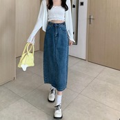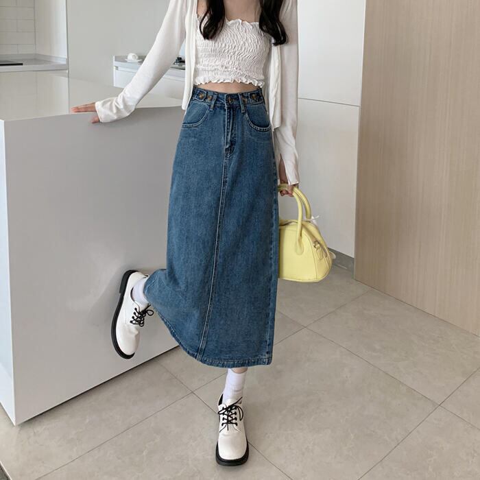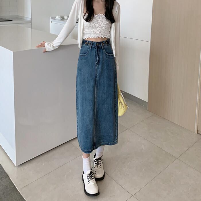 デニム スカート ロングスカート ロング丈 カジュアル レディース フェミニン 大人可愛い ヴィンテージ シンプル ミモレ丈 タイト スリム かっこいい 大きいサイズ オールシーズン ブルー 青 春 秋 冬 20代 30代 40代 50代