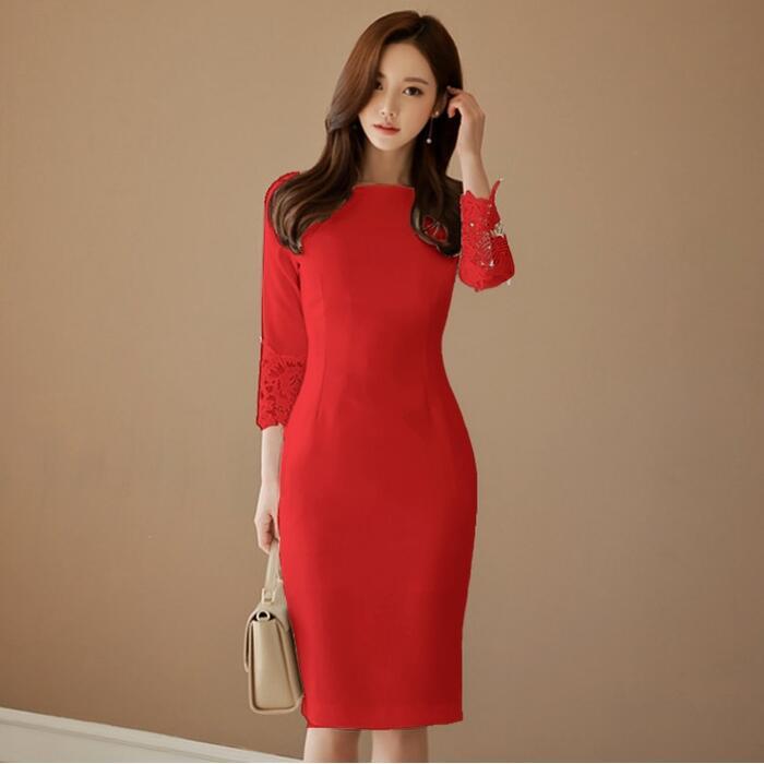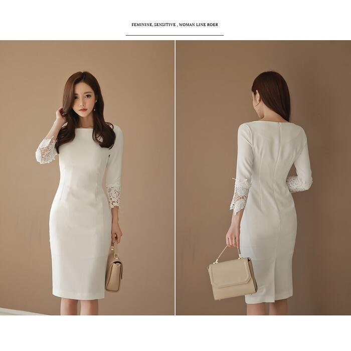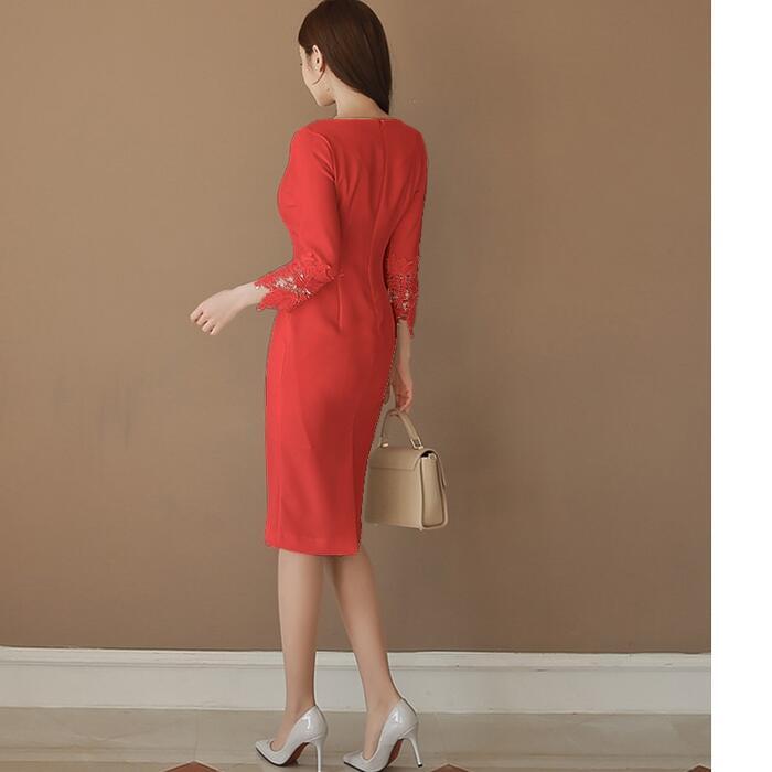 全3色 大きいサイズ結婚式 ワンピース 袖あり ミモレ丈 フォーマル エレガント おしゃれ 大人可愛い レース 七分袖 お呼ばれ イベント レディース セレモニー 発表会 お出かけ パーティー ブラック 黒 ホワイト 白 レッド 赤 春 秋 冬 20代 30代 40代 50代