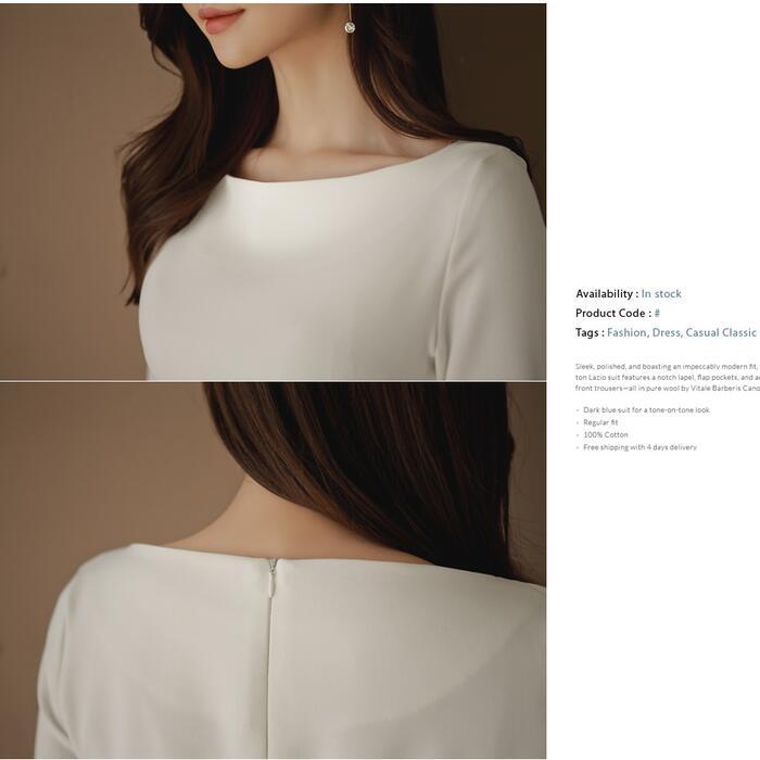エレガントな雰囲気漂うボートネックワンピース。