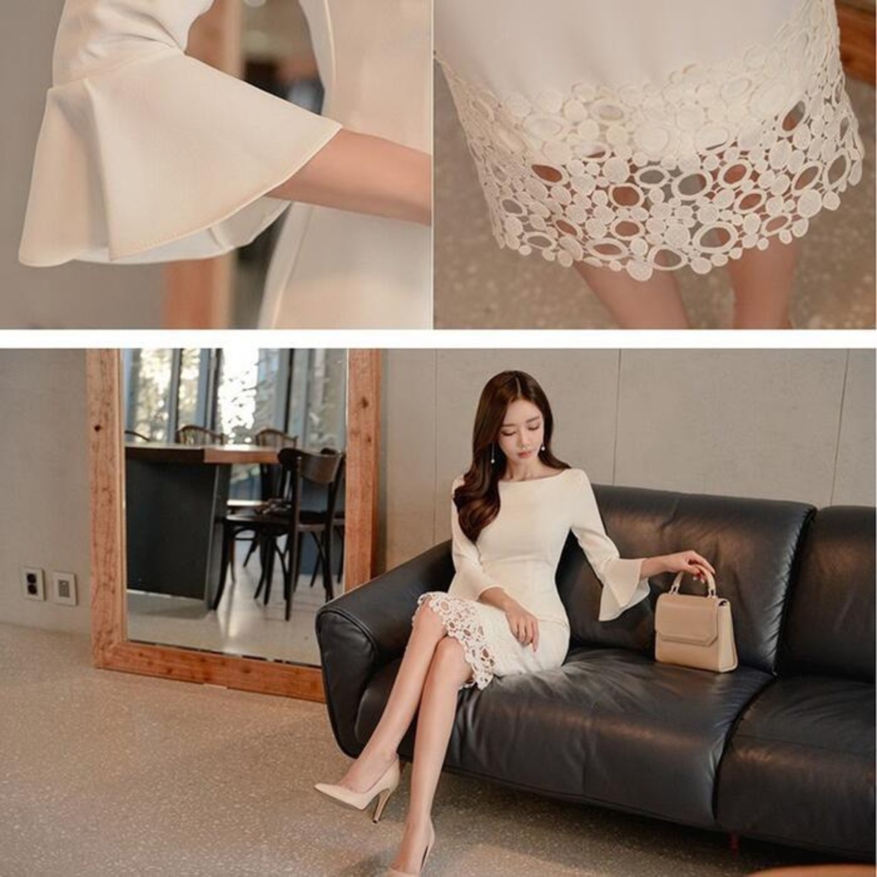 裾にレースを施したフェミニンなデザイン。