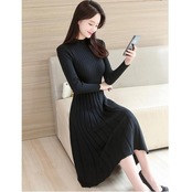シンプルなデザインのリブニットワンピース。