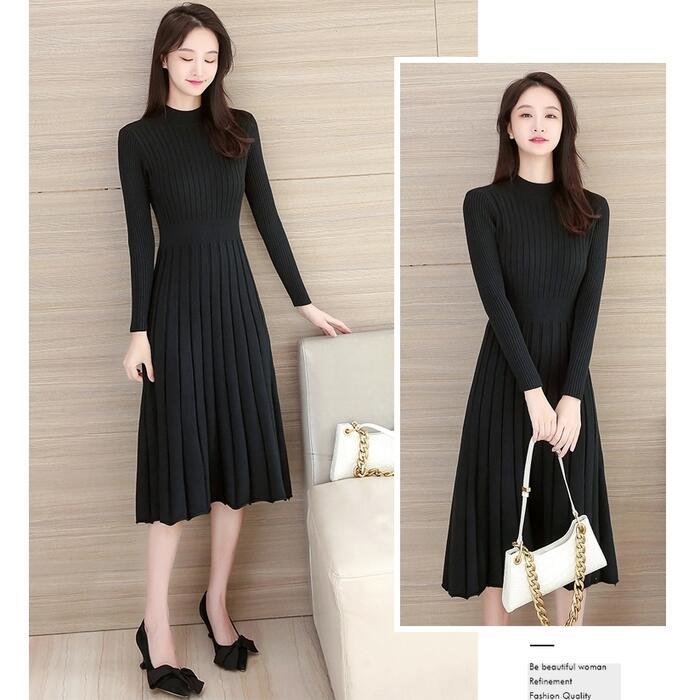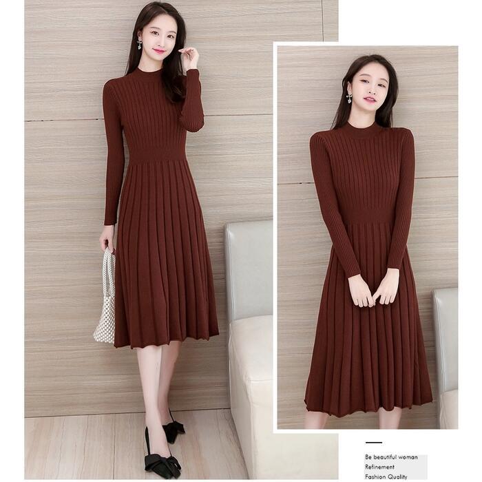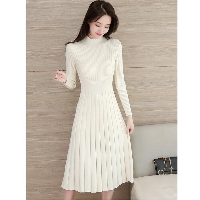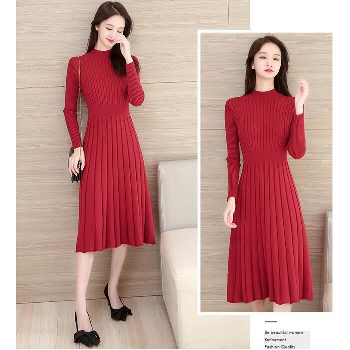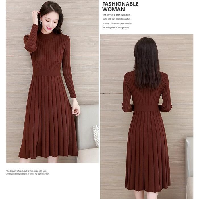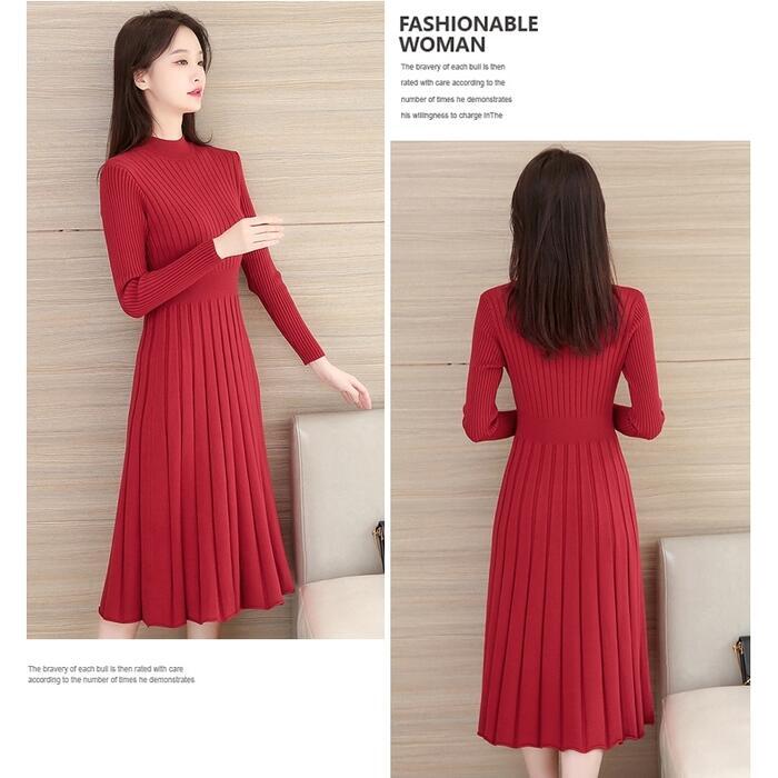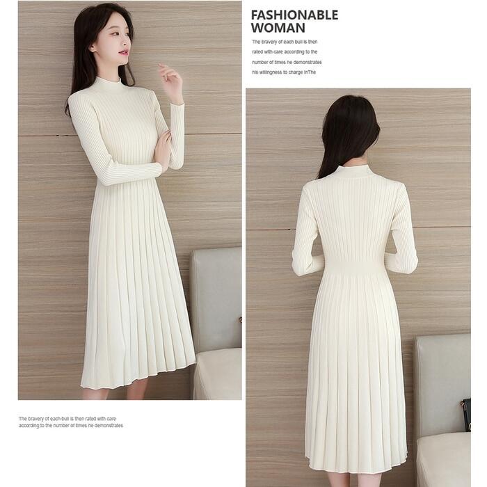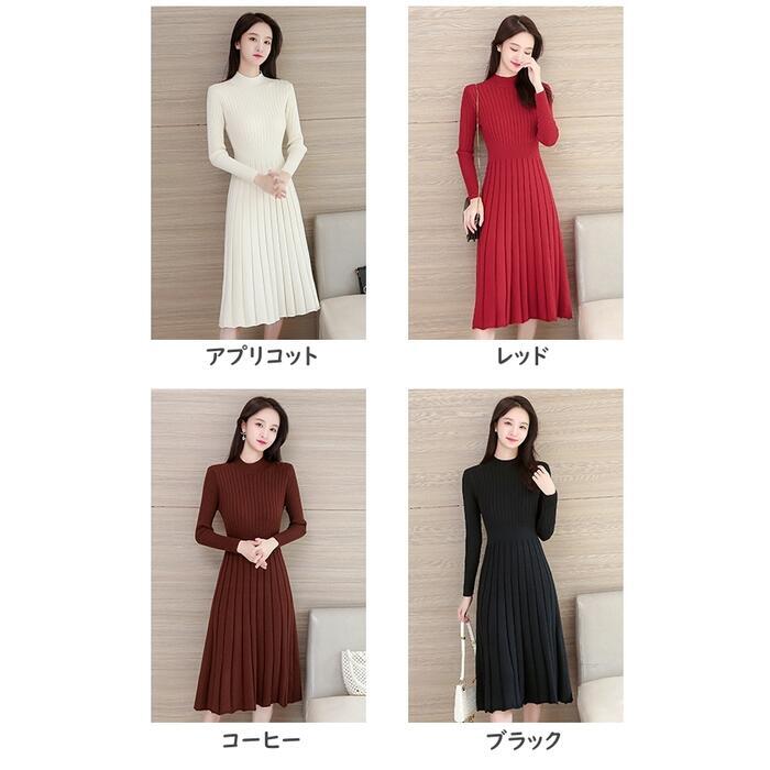 全4色 大きいサイズニット ワンピース ロングワンピ ミモレ丈 ひざ丈 きれいめ カジュアル レディース ワンピ ドレス 長袖 シンプル おしゃれ ハイウエスト 切り替え ハイネック 大人可愛い レッド 赤 ブラウン ベージュ ブラック 黒 春 秋 冬 20代 30代 40代 50代