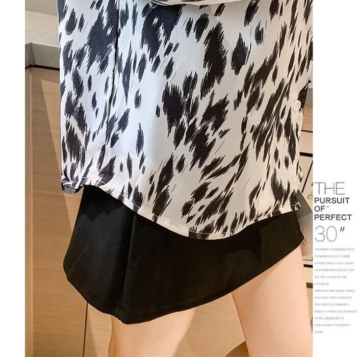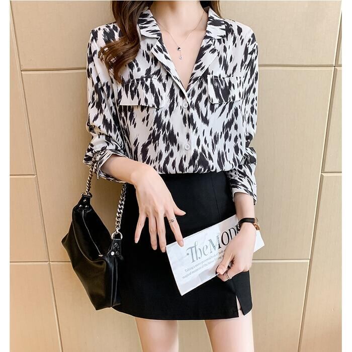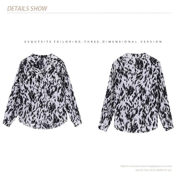 大きいサイズトップス シフォン シャツ ブラウス アニマル柄 開襟 エレガント レディース カジュアル おしゃれ 長袖 きれいめ 大人可愛い フェミニン かっこいい お出かけ オフィス 体系カバー ホワイト 白 ブラック 黒 春 秋 冬 20代 30代 40代 50代
