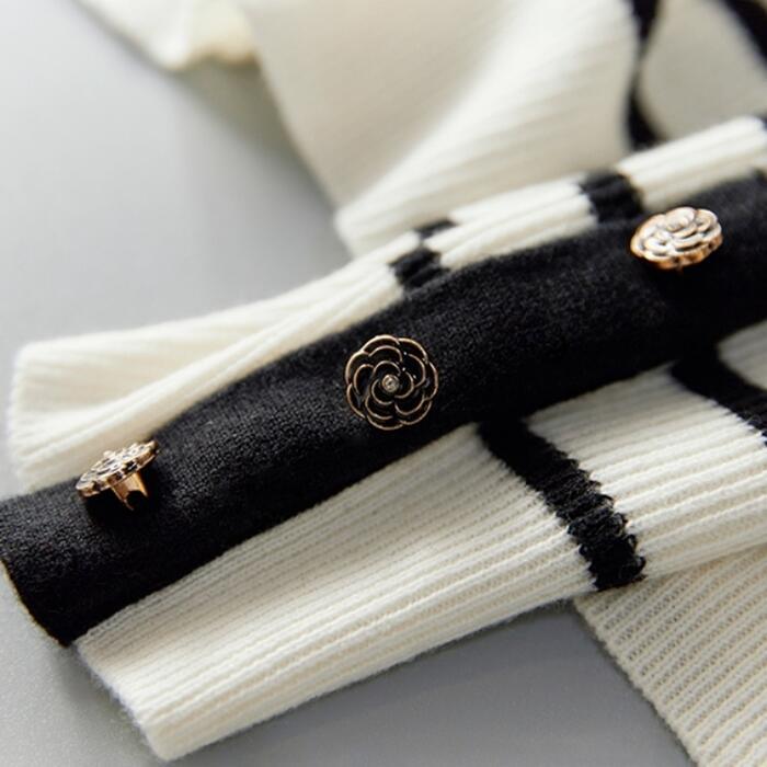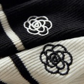 花モチーフが可愛いボーダーニット。