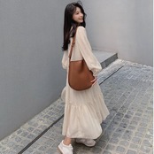 ふんわりしたティアードデザインが可愛いロングワンピース。