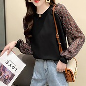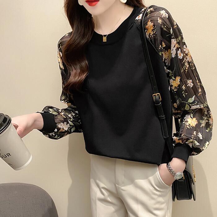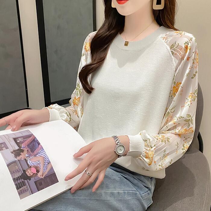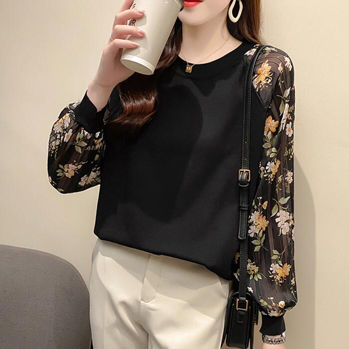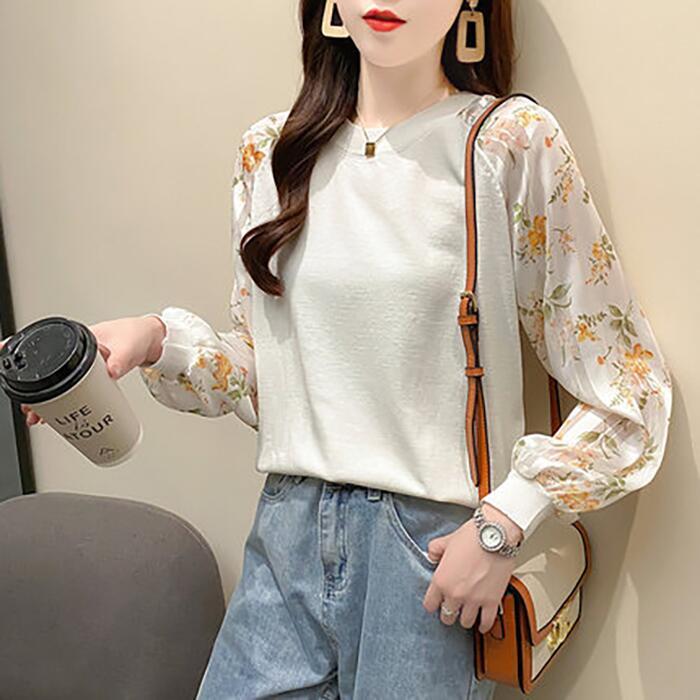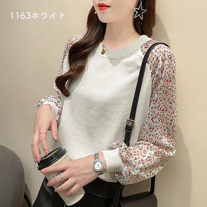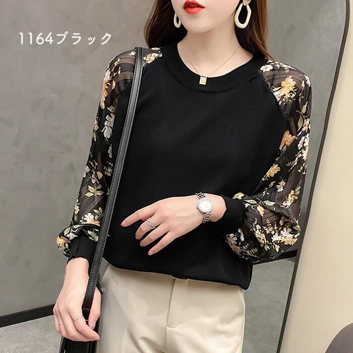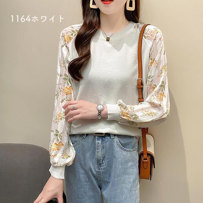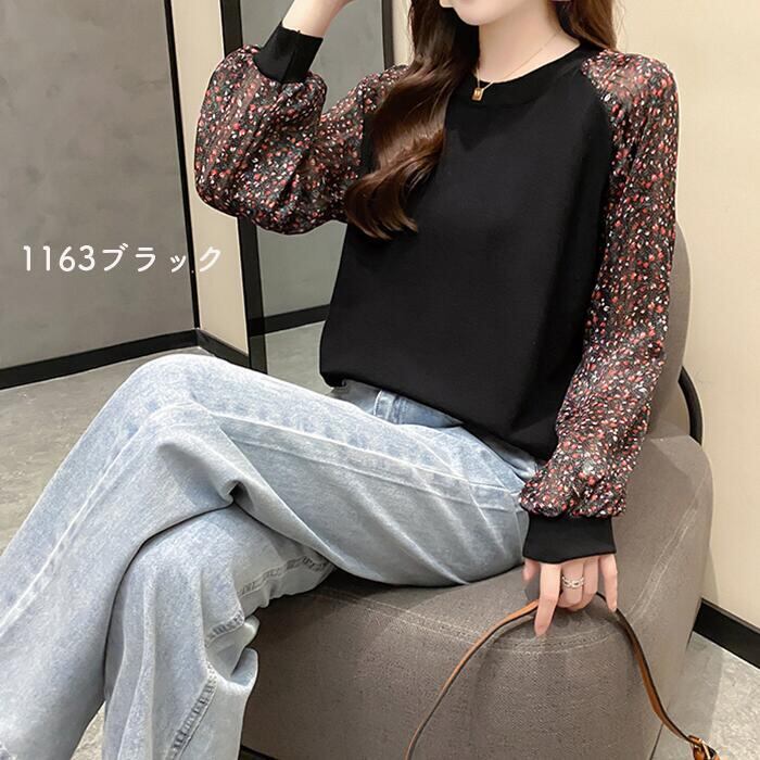 全4色 ニット トップス レディース カジュアル おしゃれ 長袖 パフスリーブ 透け感 ラウンドネックネック セーター きれいめ ガーリー 花柄 可愛い デート お出かけ ホワイト 白 ブラック 黒 春 秋 冬 20代 30代 40代 50代