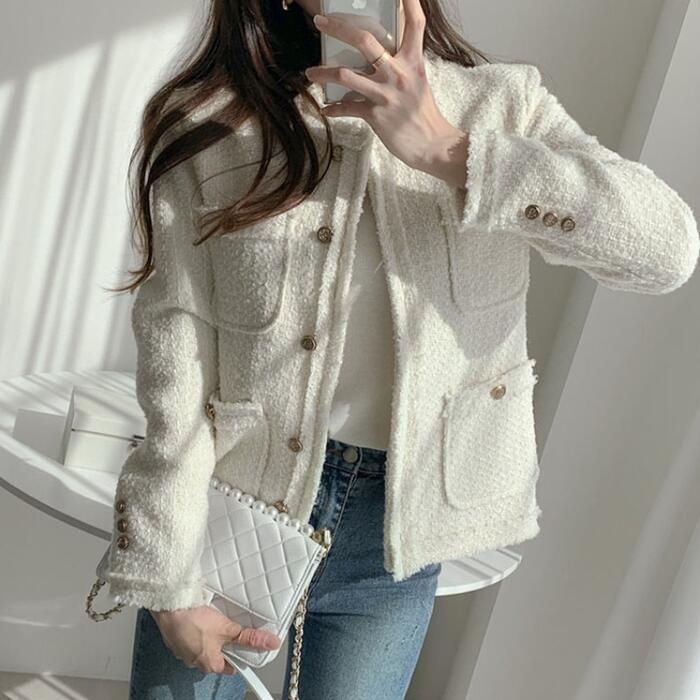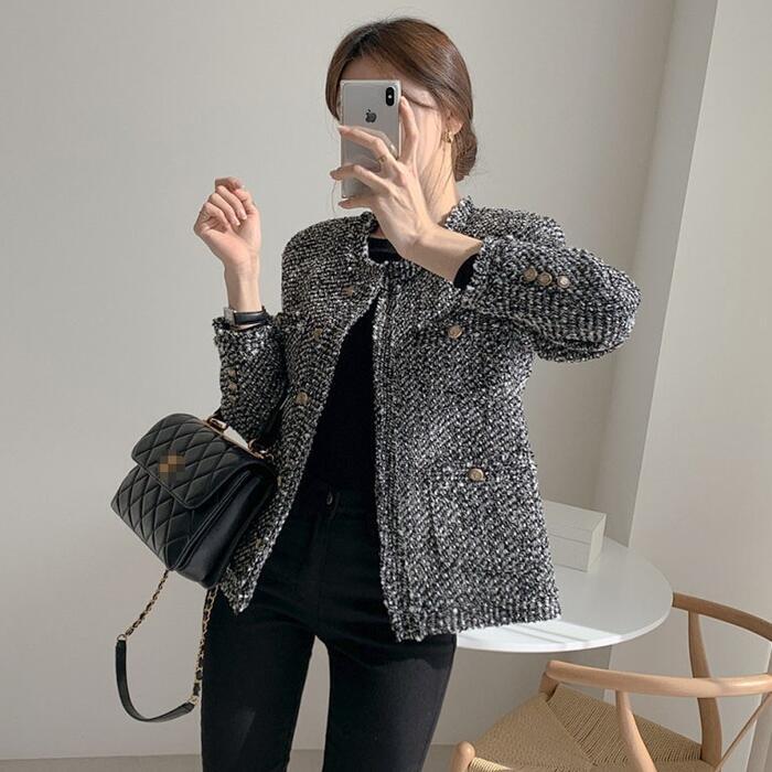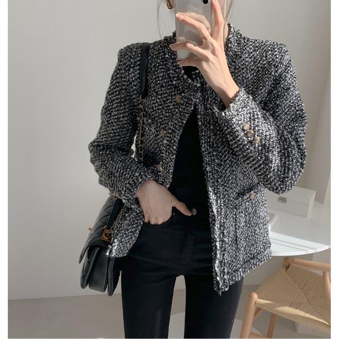 全2色 ジャケット コート ツイード アウター ノーカラー レディース きれいめ カジュアル おしゃれ 長袖 エレガント 大人可愛い フェミニン シンプル オフィス お呼ばれ デート 通勤 クラシカル ベージュ グレー 春 秋 冬 20代 30代 40代 50代