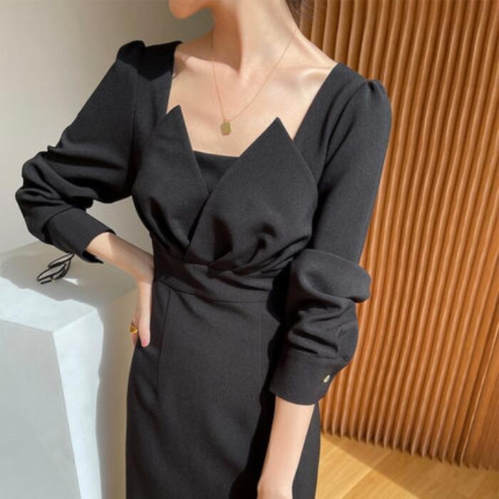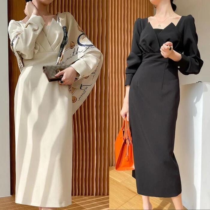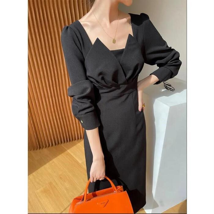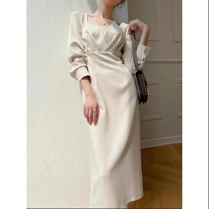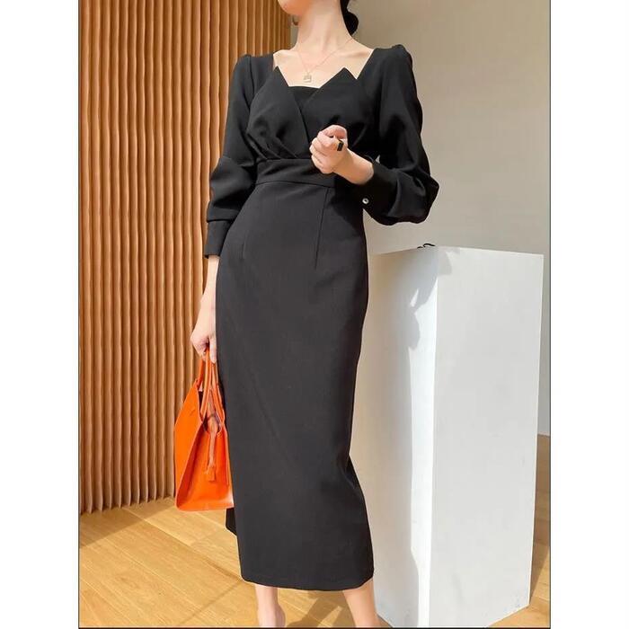 全2色 エレガント結婚式 ワンピース ロングワンピ 袖あり エレガント 切り替え ミモレ丈 きれいめ レディース ワンピ ドレス 長袖 ハイウエスト フォーマル セレモニー 発表会 大人可愛い 二次会 パーティー ホワイト 白 ブラック 黒 春 秋 20代 30代 40代 50代