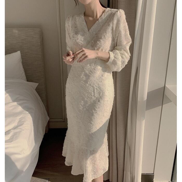 程よい透け感が上品なVネックワンピース。